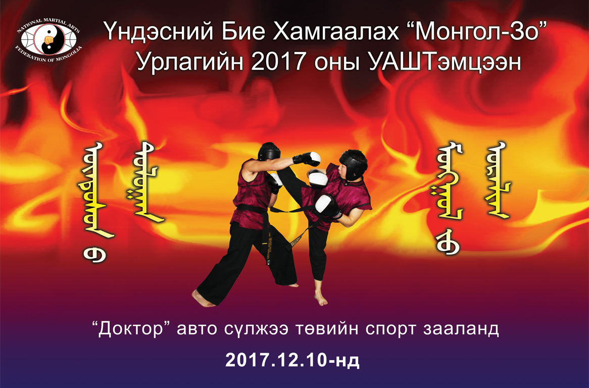 Монголын Үндэсний Бие Хамгаалах Урлагийн Холбооны Өсвөр үе, Залуучууд, Насанд хүрэгчдийн 2017 оны Улсын Аварга Шалгаруулах Тэмцээн 2017 оны 12-р сарын 10-нд “DOCTOR” авто сүлжээ төвийн /Хүннү моллын баруун хойно/ спорт зааланд зохиогдох тул баг тамирчдаа бэлтгэн оролцуулахыг урьж байна.